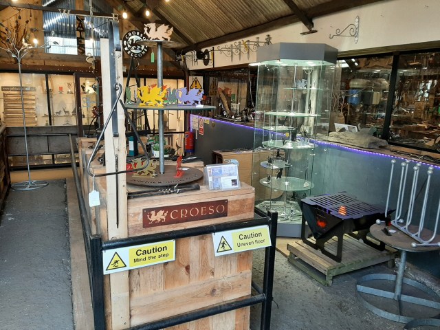 This forge has been the village smithy for generations. As you walk down Feidr Fawr towards Tegfan, you’ll see J E Thomas and Son on the righthand side, not long after leaving the main road. It doesn’t look special – just an ordinary old fashioned shed , but it’s worth stopping to look at the display outside.