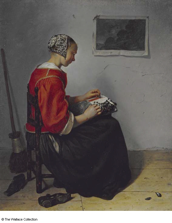 I recently visited the Wallace Collection in London’s Manchester Square and was struck by Caspar Netscher’s Lace Maker. The sitter for this portrait was making her lace 350 years ago in the Netherlands in the same way as Mary Worthington is today, in Dinas Cross.