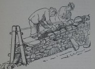 The ancient craft of making a dry stone wall has a mystique of its own and I love the way that experts describe the process. Arthur Raistrick‘s slim little book, ‘The Story of the Pennine Walls’ is both scholarly and practical. The author’s knowledge is exhaustive but lightly worn; in twenty-six pages he ranges from the history of land enclosure in the Pennines to the building of the walls and the lives of the masons. It was published for one shilling in 1946. Here is one of his illustrations.