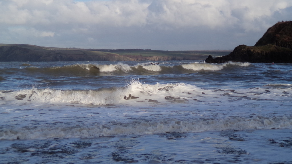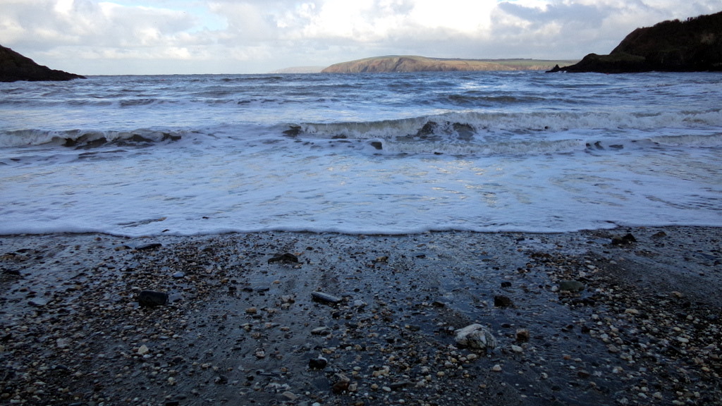 This was Cwm-yr-Eglwys last weekend, when the Stena Ferry from Ireland failed to berth at Fishguard to unload its vehicles and had to wait for hours in Cardigan bay for calmer seas.