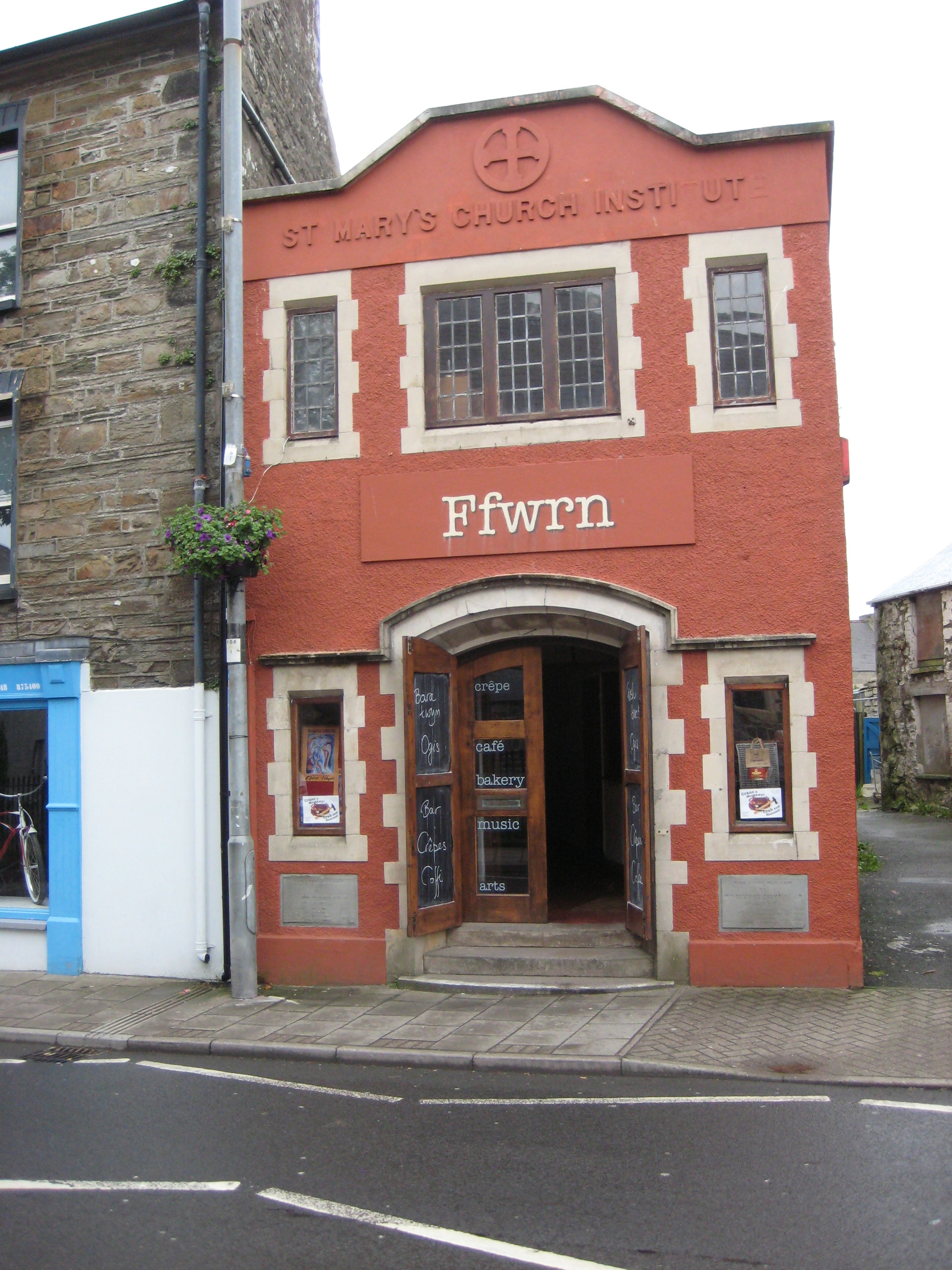 We had an early lunch at St Mary’s Church Institute Ffwrn. As you approach Fishguard’s main square (coming from Dinas) it’s on the left, opposite the church. From the outside, it doesn’t look much changed and once you are through the main doors it’s thoroughly Church Hall – long gloomy corridor and dark doors.